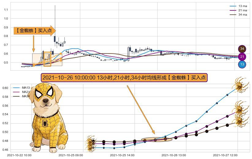 ⚀ 2021-10-26 10:00:00小时显现 13小时-21小时-34小时均线 【金蜘蛛】买入点 看多信号,后市看涨,买入