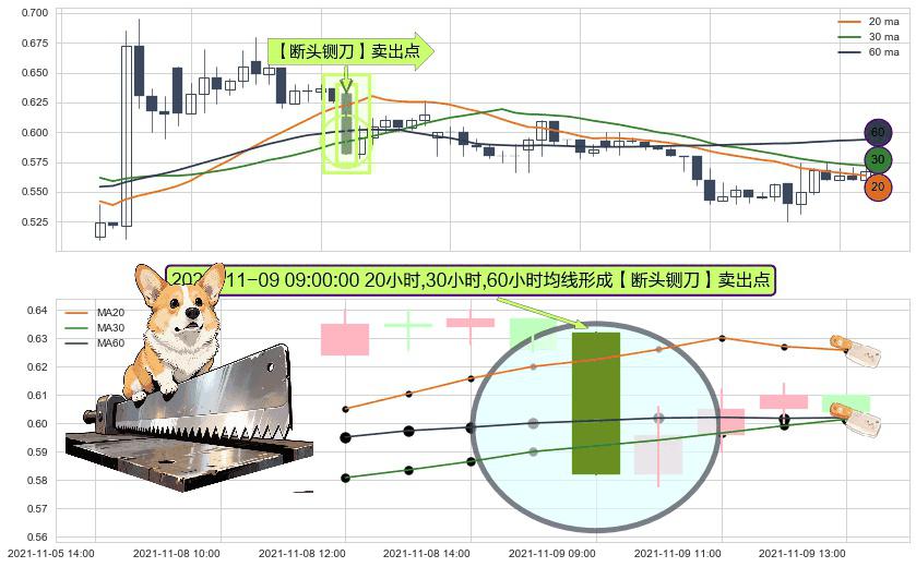 ⚀ 2021-11-09 09:00:00小时显现 20小时-30小时-60小时均线 【断头铡刀】卖出点 看空信号,后市看跌,卖出