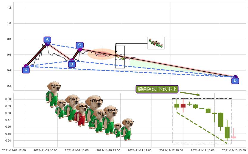 ➣ 未完成【蝴蝶】形态起点X: 10-22:10, 已到达C点: 11-04:11, 预测最终D点: 12-09:14, 共209交易小时