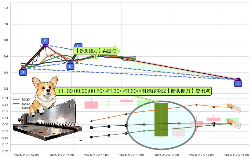 从2021-06-08 10:00至2021-11-16 15:00,共包含690个小时,阶段股价下跌-66.79%,阶段股价变动位移路程比: 1 : 21