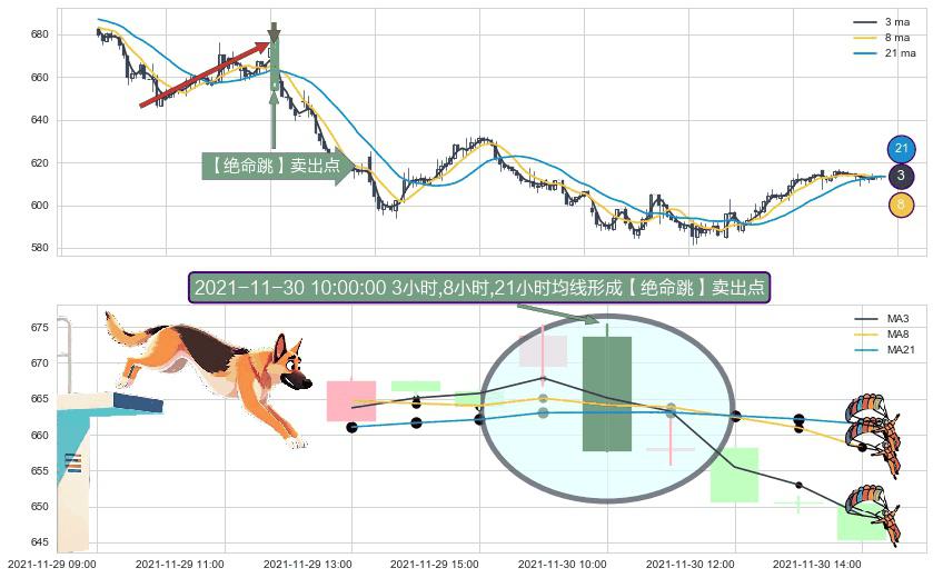 ⚀ 2021-11-30 10:00:00小时显现 3小时-8小时-21小时均线 【绝命跳】卖出点 看空信号,后市看跌,卖出