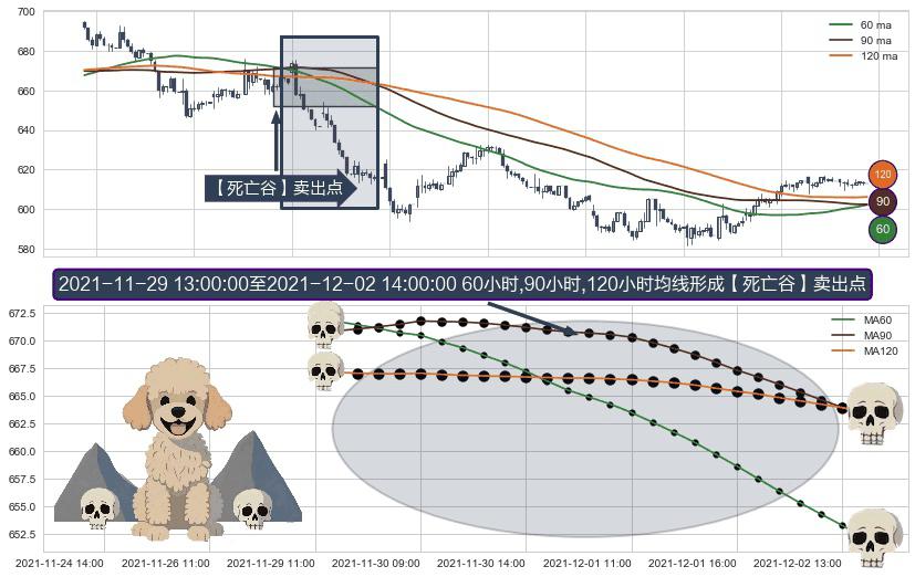 ⚀ 2021-11-29 14:00:00-小时至2021-12-02 14:00:00-小时显现 60小时-90小时-120小时均线 【死亡谷】卖出点 看空信号,后市看跌,卖出