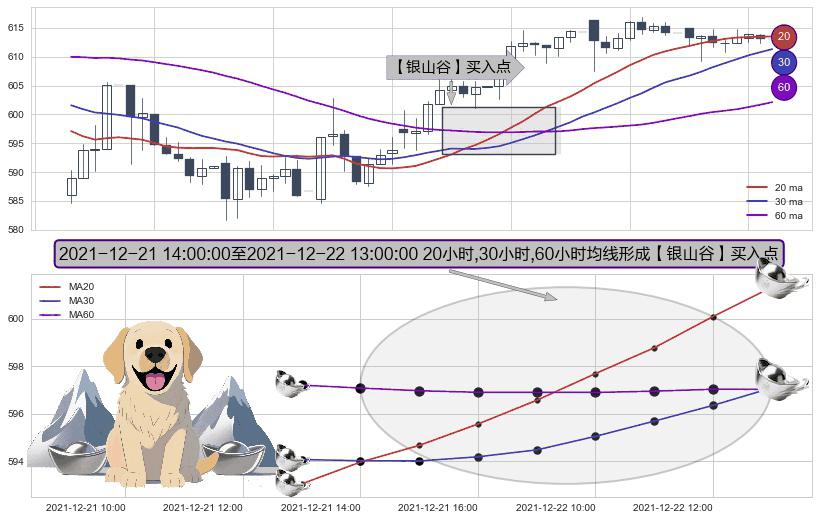⚀ 2021-12-21 15:00:00-小时至2021-12-22 13:00:00-小时显现 20小时-30小时-60小时均线 【银山谷】买入点 看多信号,后市看涨,买入