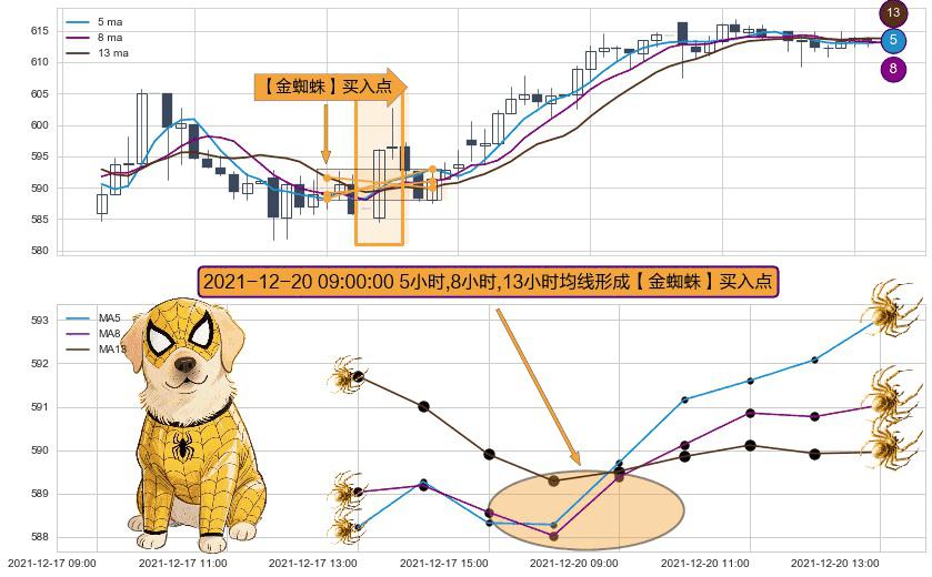 ⚀ 2021-12-20 09:00:00小时显现 5小时-8小时-13小时均线 【金蜘蛛】买入点 看多信号,后市看涨,买入