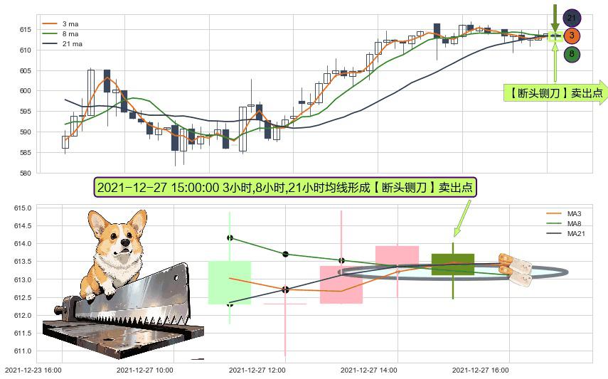 ⚀ 2021-12-27 15:00:00小时显现 3小时-8小时-21小时均线 【断头铡刀】卖出点 看空信号,后市看跌,卖出