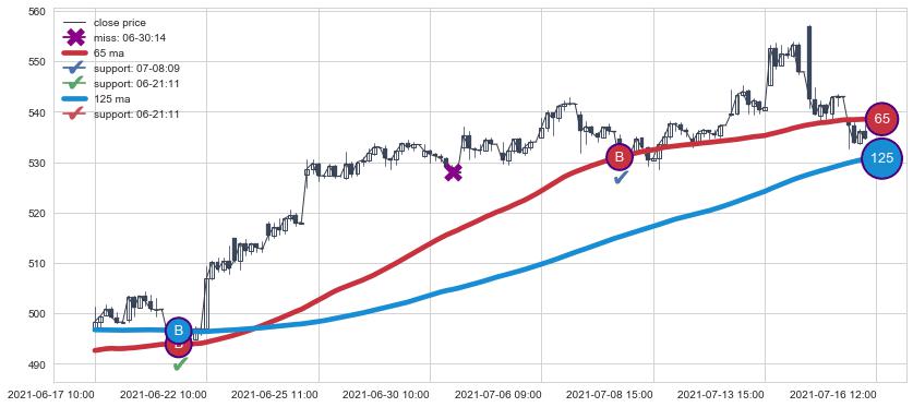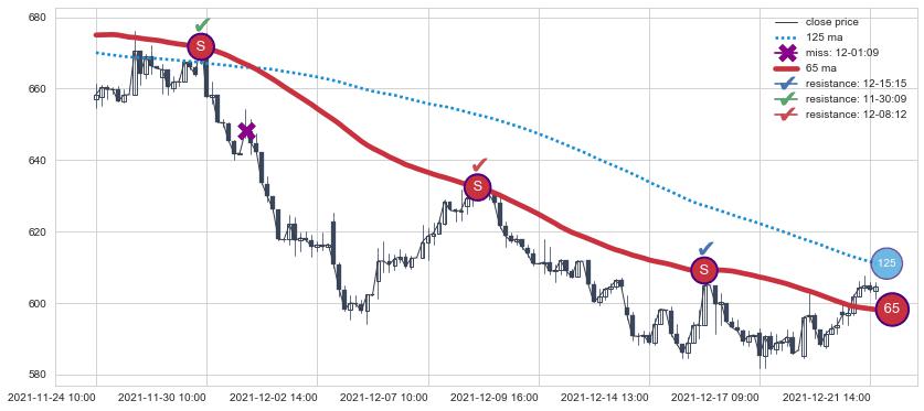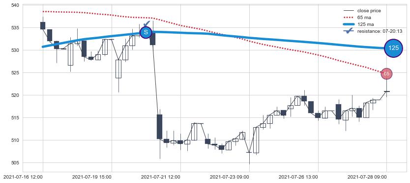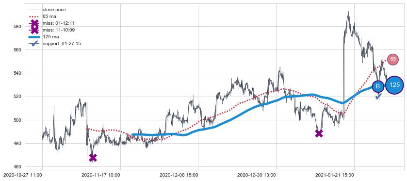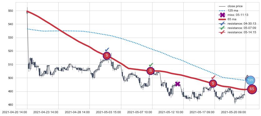 ⚁ MA3和MA8走势平行,且始终保持在短距离内,MA21始终在短中期均线上方,与短中期均线保持一定的距离,微微下行