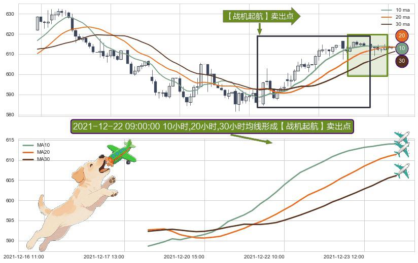 ⚀ 2021-12-17 16:00:00小时-2021-12-23 16:00:00小时显现 10小时-20小时-30小时均线 【战机起航】卖出点 看空信号,后市看跌,卖出