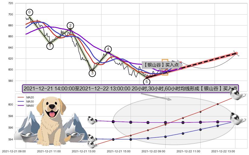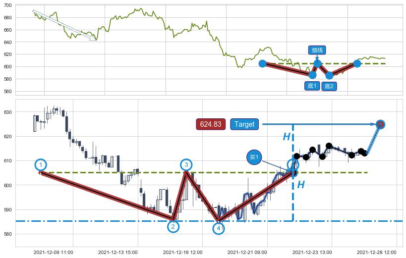 ➢ 【买1】: 激进型 买点 →(12-22:09: 605.05 )形成突破双重底【反转】形态