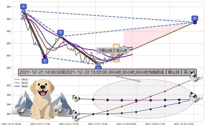 ♘ 支撑价格位595.10,可信任强度84.38%,距离最后交易2021-12-27 16:00形成的收盘价格613.12相差 -2.94%