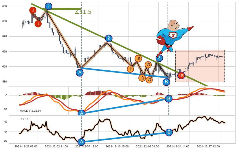| 3 🅚:【蛟龙出海】买入点 ➕ 📡:谐波赛福猜想c点下沉击穿越过b点后报复性拉升上涨(均值回复) ☞ 看多信号 ⇥ 【均线】交织【图形】⇥ 综合量化分数: 63 | > |