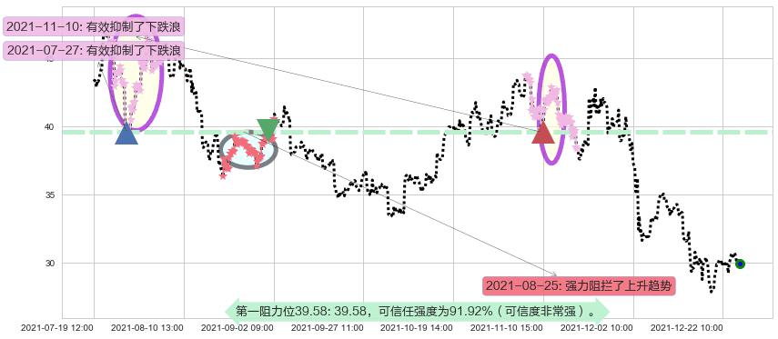 ♘ 阻力价格位39.58,可信任强度91.92%,距离最后交易2021-12-27 15:00形成的收盘价格29.96相差 +32.11%