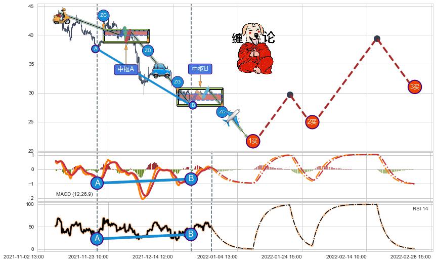 ➢ AI预测: 假定反转如期而至,第❸价格目标位置(01-31:13, 43.77)