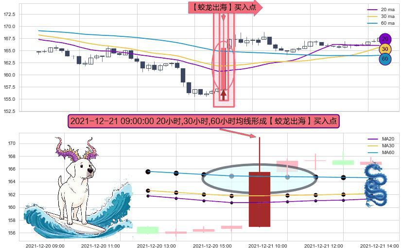 ⚀ 2021-12-21 09:00:00小时显现 20小时-30小时-60小时均线 【蛟龙出海】买入点 看多信号,后市看涨,买入