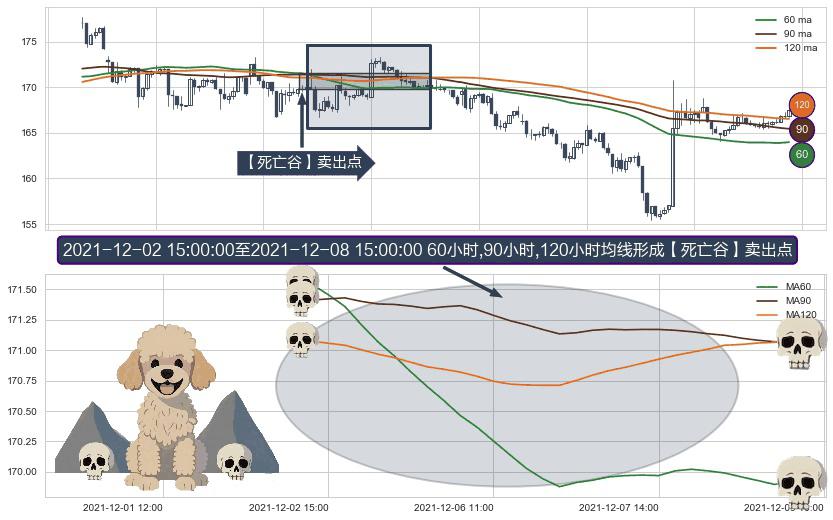 ⚀ 2021-12-03 09:00:00-小时至2021-12-08 15:00:00-小时显现 60小时-90小时-120小时均线 【死亡谷】卖出点 看空信号,后市看跌,卖出