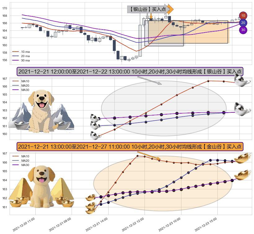 ⚀ 2021-12-21 14:00:00-小时至2021-12-27 11:00:00-小时显现 10小时-20小时-30小时均线 【金山谷】买入点 其再次确认了买入信号,可靠性更强,买入