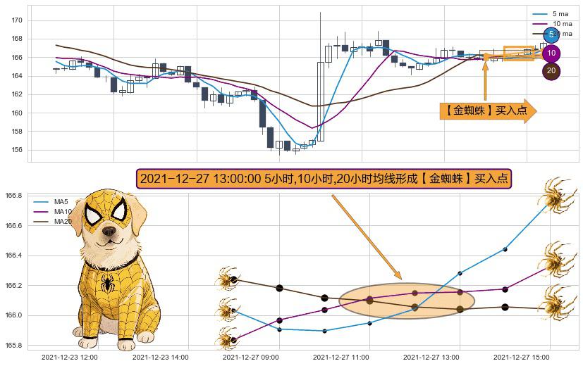 ⚀ 2021-12-27 13:00:00小时显现 5小时-10小时-20小时均线 【金蜘蛛】买入点 看多信号,后市看涨,买入