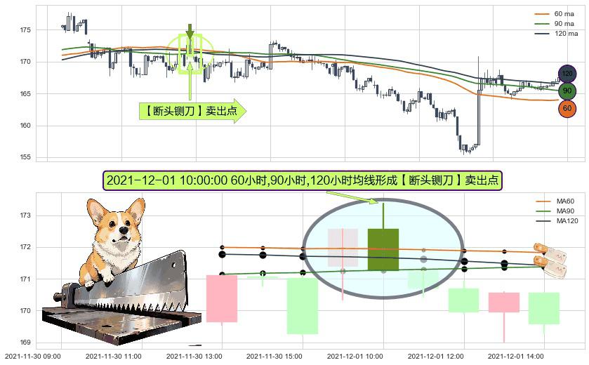 ⚀ 2021-12-01 10:00:00小时显现 60小时-90小时-120小时均线 【断头铡刀】卖出点 看空信号,后市看跌,卖出