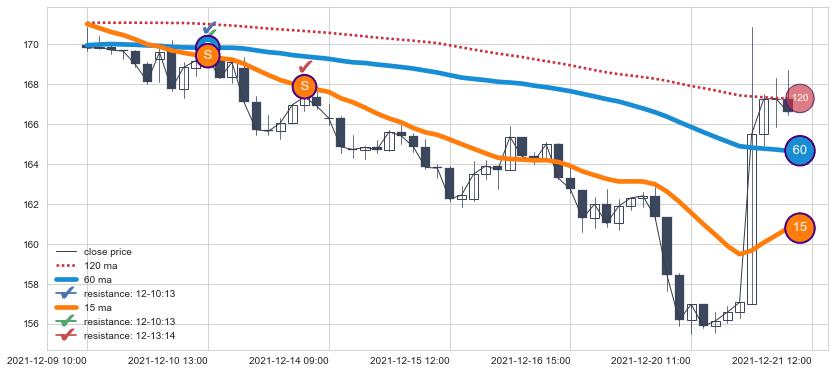 ⚂ 2021-12-21 09:00:00小时突然冒出一根大阳线,一下子顶穿三条均线且收盘价收在各条均线之上