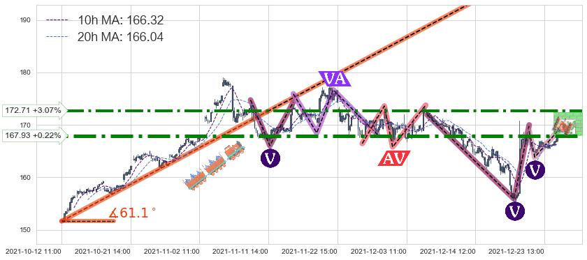 ♘ 阻力价格位167.93,可信任强度94.04%,距离最后交易2021-12-27 15:00形成的收盘价格167.56相差 +0.22%