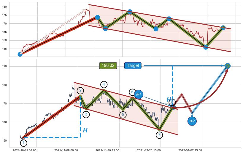 ➣ 最小中继整理涨幅→𝐇: 22.16 (𝐇旗杆的长度:旗杆起点→顶点)