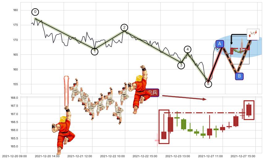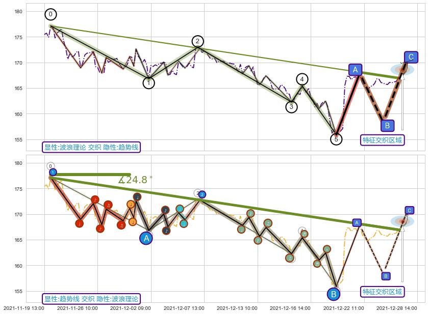 从2021-12-22 09:00至2021-12-27 15:00,共包含21个小时,阶段股价下跌-0.16%,阶段股价变动位移路程比: 1 : 30