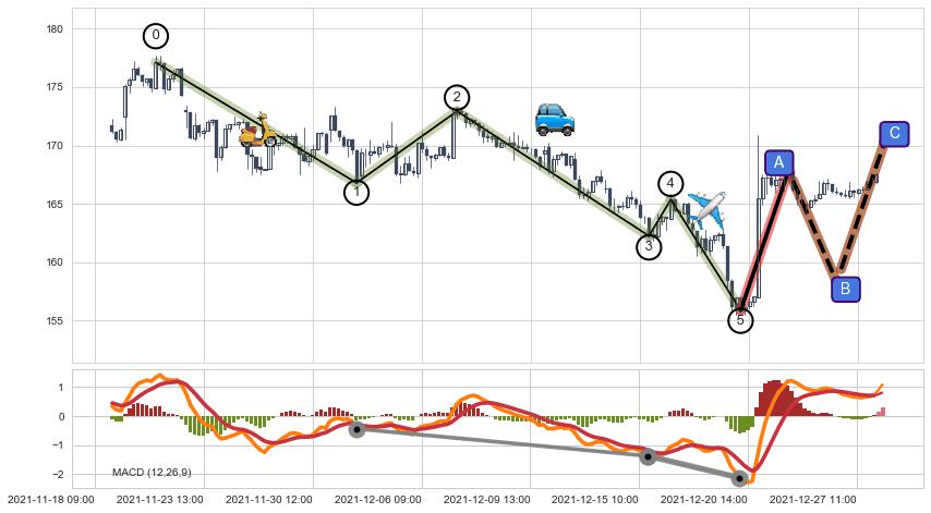 | 3 🅚:【高山滑雪】买入点 ➕ 🌊:波浪理论即将到达C点,猜想随后C点击穿突破, 下跌5浪延续反弹趋势,猜想持续蓄力反弹abc上涨方向(大周期趋势均值回复后小周期持续趋势跟踪) ☞ 看多信号 ⇥ 【均线】交织【图形】⇥ 综合量化分数: 78 | > |
