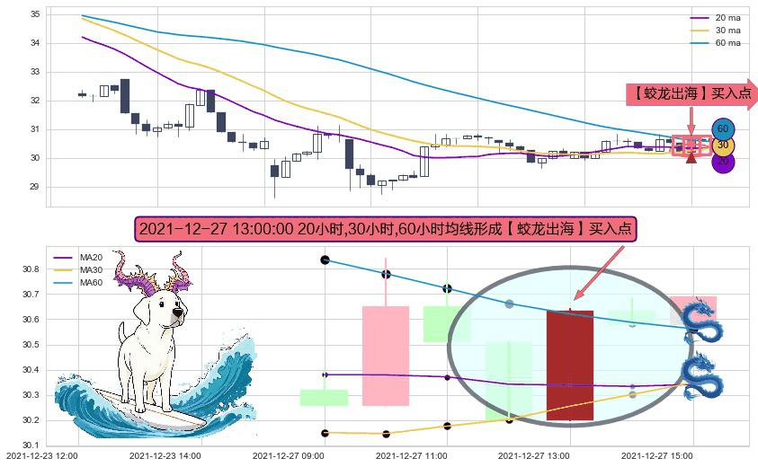 形态多维评估: ⚀ 2021-12-27 13:00:00小时显现 20小时-30小时-60小时均线 【蛟龙出海】买入点 看多信号,后市看涨,买入