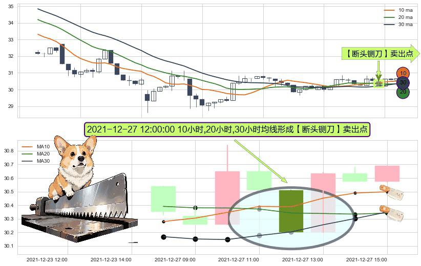 形态多维评估: ⚀ 2021-12-27 12:00:00小时显现 10小时-20小时-30小时均线 【断头铡刀】卖出点 看空信号,后市看跌,卖出