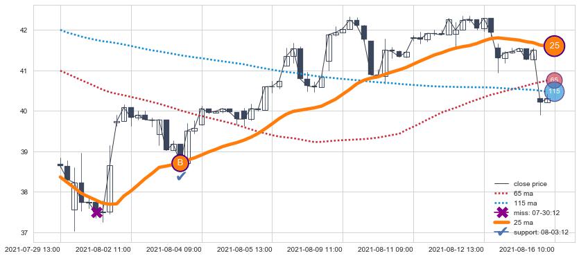 上涨趋势07-29 13:00-08-16 10:00,均线25确认关键支撑1处