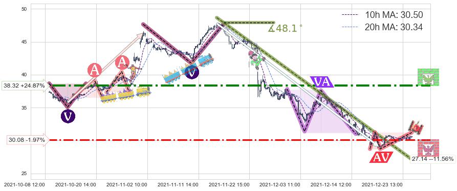 ♘ 阻力价格位38.32,可信任强度74.58%,距离最后交易2021-12-27 15:00形成的收盘价格30.69相差 +24.87%
