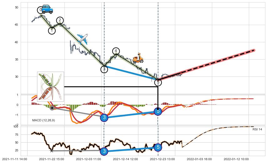 | 4 🅚:【蛟龙出海】买入点 ➕ 🌊:波浪理论猜想下跌浪5已形成,猜想后续形成abc反弹上涨(均值回复) ☞ 看多信号 ⇥ 【均线】交织【图形】⇥ 综合量化分数: 53 | > |