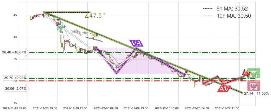 ♘ 阻力价格位30.70,可信任强度62.27%,距离最后交易2021-12-27 15:00形成的收盘价格30.69相差 +0.02%