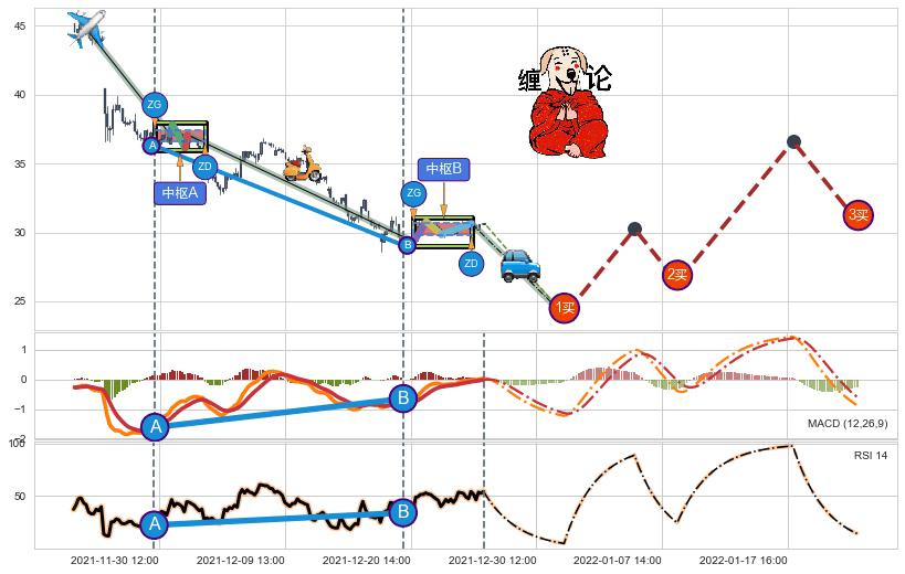 ➣ 【未完成】缠论 起点:11-22:14, 完成第1中枢A,完成第2中枢B,到达12-27:15