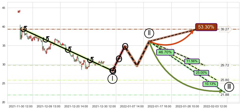 ➢ 循环浪继续向下【最高】位置(01-27:12, 29.72),匹配聚类样本比例24.76%, 可能性概率11.56%