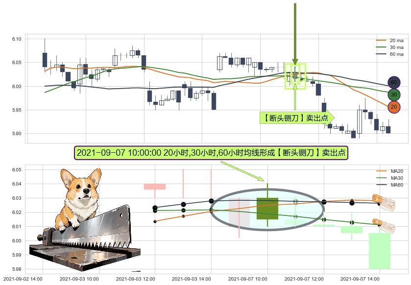 ⚀ 2021-09-07 10:00:00小时显现 20小时-30小时-60小时均线 【断头铡刀】卖出点 看空信号,后市看跌,卖出