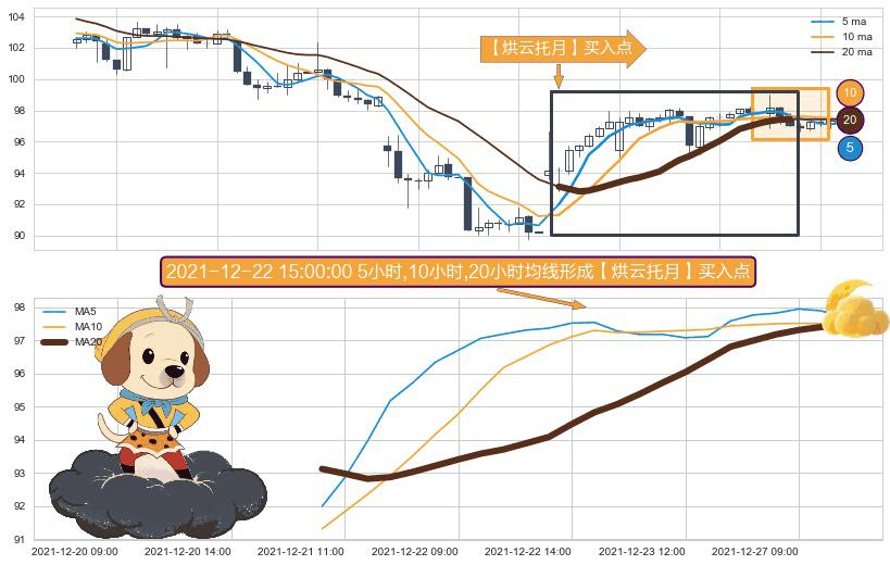 ⚀ 2021-12-21 10:00:00小时-2021-12-27 11:00:00小时显现 5小时-10小时-20小时均线 【烘云托月】买入点 看多信号,后市看涨,买入