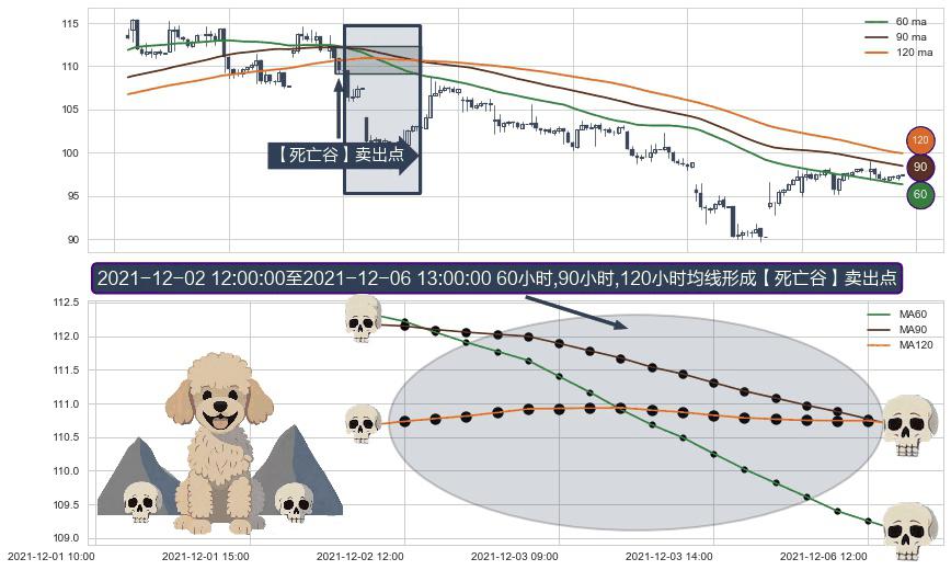 ⚀ 2021-12-02 13:00:00-小时至2021-12-06 13:00:00-小时显现 60小时-90小时-120小时均线 【死亡谷】卖出点 看空信号,后市看跌,卖出