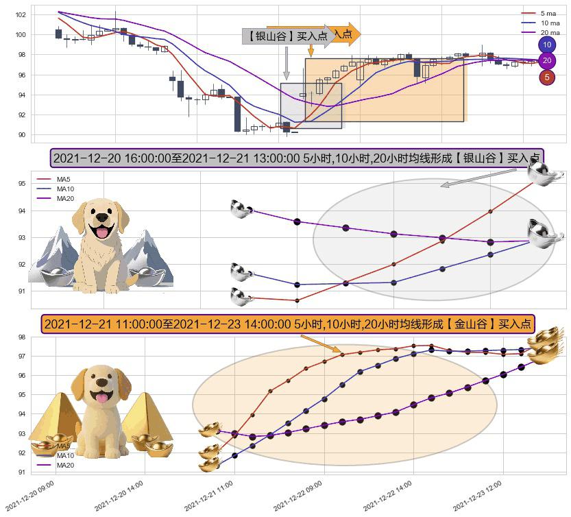 ⚀ 2021-12-21 12:00:00-小时至2021-12-23 14:00:00-小时显现 5小时-10小时-20小时均线 【金山谷】买入点 其再次确认了买入信号,可靠性更强,买入