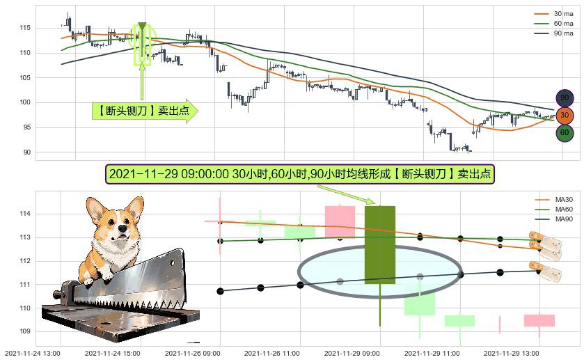 ⚀ 2021-11-29 09:00:00小时显现 30小时-60小时-90小时均线 【断头铡刀】卖出点 看空信号,后市看跌,卖出