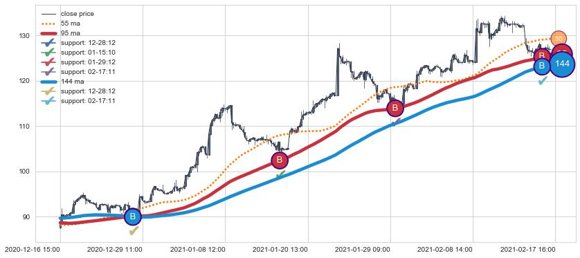 ➢ 发现最优均线组合: 55 , 95 , 144