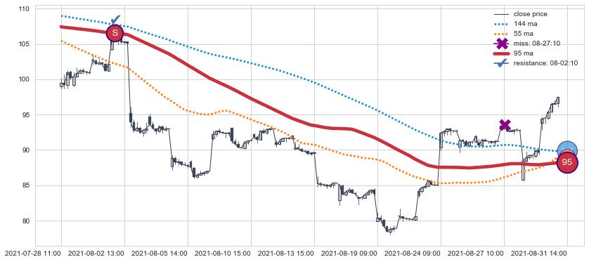 ⚃ 在破位点附近ma走势已有下垂迹象,稍后的走势中ma下降趋势明显,信号【可信度高】