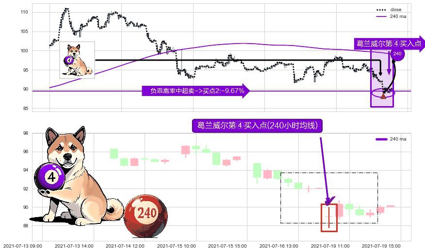 ⚀ 2021-07-19 09:00:00-小时显现 葛兰威尔均线 240小时均线 第④买入点 下降趋势均值回复的短线反弹信号,后市看涨,买进信号