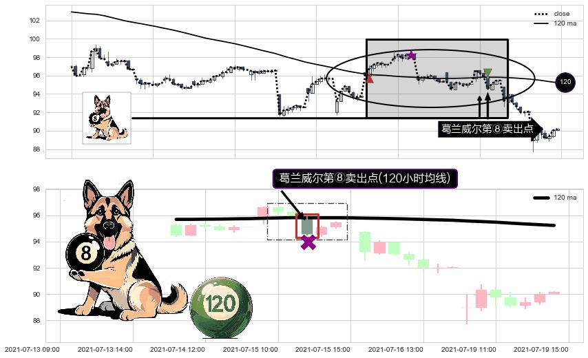 ⚀ 2021-07-15 12:00:00-小时显现 葛兰威尔均线 120小时均线 第⑧卖出点 下降趋势的中继信号,后市看跌,卖出信号