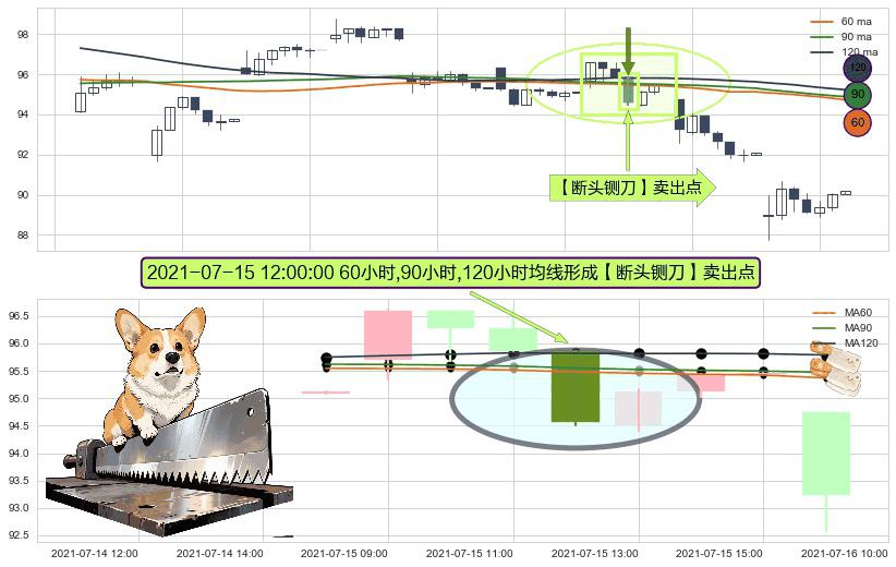 ⚀ 2021-07-15 12:00:00小时显现 60小时-90小时-120小时均线 【断头铡刀】卖出点 看空信号,后市看跌,卖出