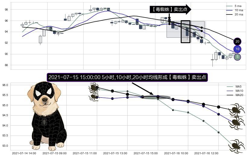 ⚀ 2021-07-15 15:00:00小时显现 5小时-10小时-20小时均线 【毒蜘蛛】卖出点 看空信号,后市看跌,卖出