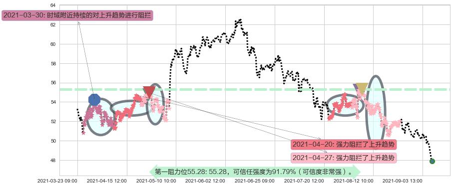 ♘ 阻力价格位55.28,可信任强度91.79%,距离最后交易2021-09-09 14:00形成的收盘价格47.87相差 +15.49%