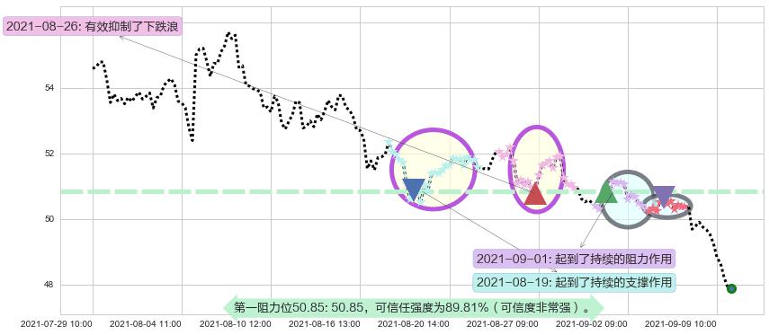 2021-08-26: 第一阻力位50.85有效抑制了下跌浪,成功阻止了价格的继续下跌。