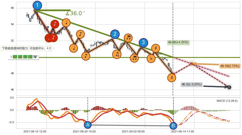 ➣ 预测:2021-09-20 15:00,【继续下探】稳定目前下跌趋势的前提下,预测价格:46.32