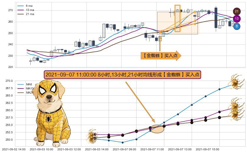 ⚀ 2021-09-07 11:00:00小时显现 8小时-13小时-21小时均线 【金蜘蛛】买入点 看多信号,后市看涨,买入