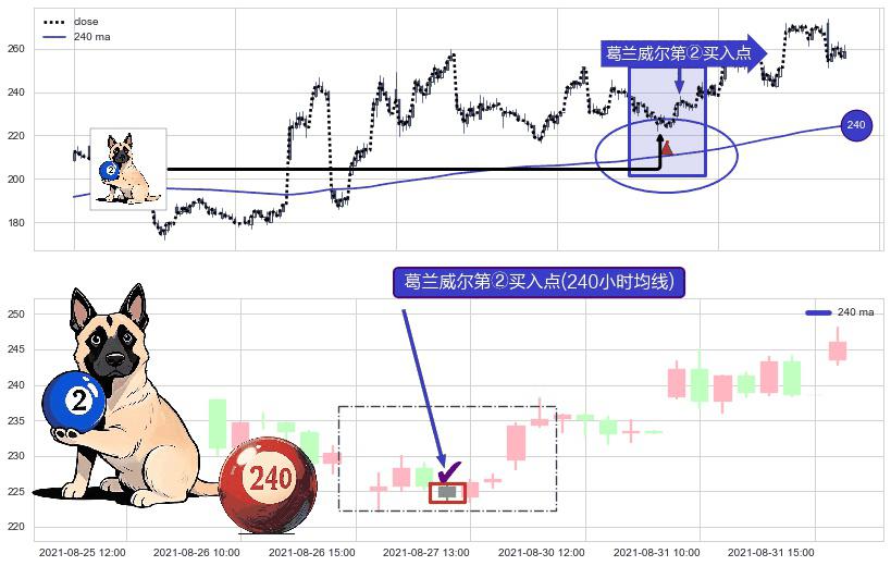 ⚁ 240小时均线 第②买入点 属于 均线服从 信号,属于趋势运行的【常态】即信号期望为上涨趋势的中继